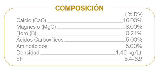 mejora el amarre y calidad de los frutos, le da rigidez y elasticidad a la pared celular de las