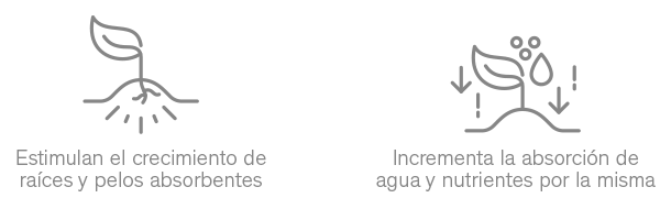 crecimiento de raíces y pelos absorbentes en todo tipo de cultivo. La