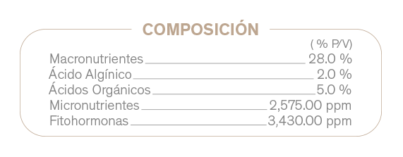 Micronutrientes, ácidos orgánicos así como de Fitohormonas que estimulan el